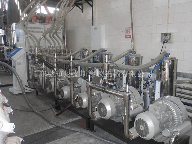 中央供料系統(tǒng)是根據(jù)客戶(hù)現(xiàn)場(chǎng)機(jī)臺(tái)的擺放情況對(duì)現(xiàn)場(chǎng)原料的用料情況,結(jié)合特有輔機(jī)設(shè)計(jì)備而設(shè)計(jì)的一種能夠?qū)崿F(xiàn)集中供料、集中控制,從而實(shí)現(xiàn)全廠無(wú)人化不間斷成型作業(yè)的整體性解決方案。