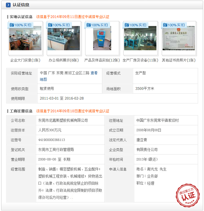 經過十幾個工作日阿里巴巴工作人員的忙碌,尼嘉斯實地考察認證也已經落下了帷幕,經過阿里巴巴工作人員親自來到公司考察、認證,拍攝了公司的營業執照,公司的辦公地點、公司的展廳、公司的倉庫、公司的部分單品的圖片,阿里巴巴實地認證的取證也算告一段路!接下來的兩天時間里,他們將把拍攝的信息跟公司的實地情況反饋給認證公司,由認證公司取證、證實!在昨天實地認證的審核順利的就通過了!這樣對以后網絡上做生意對客戶更加有了保障,客戶不用再擔心我們是“騙子公司”也不用再擔心錢打了之后我們尼嘉斯會不會發貨,我們是不是發客戶指定的貨,雖然我們以前也沒有出現過這樣的情況,但是有了這個認證,客戶的心也可以真正的放下來了!客戶不用再擔心是我們的一面之詞,現在都有了照片為證!大家以后合作可以放心了!實地認證對賣家是一個認可的作用,證實了賣家是真實存在;對買家也是一個維護,不會讓買家付錢給騙子,而造成上當受騙的損失。