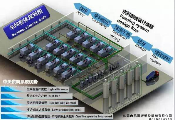 個性化:中央供料系統(tǒng)可以做到不同的使用用戶,不同的車間特點(diǎn),不同的原料使用要求。都可以依實(shí)際的需要來設(shè)計(jì)出最優(yōu)化的方案。