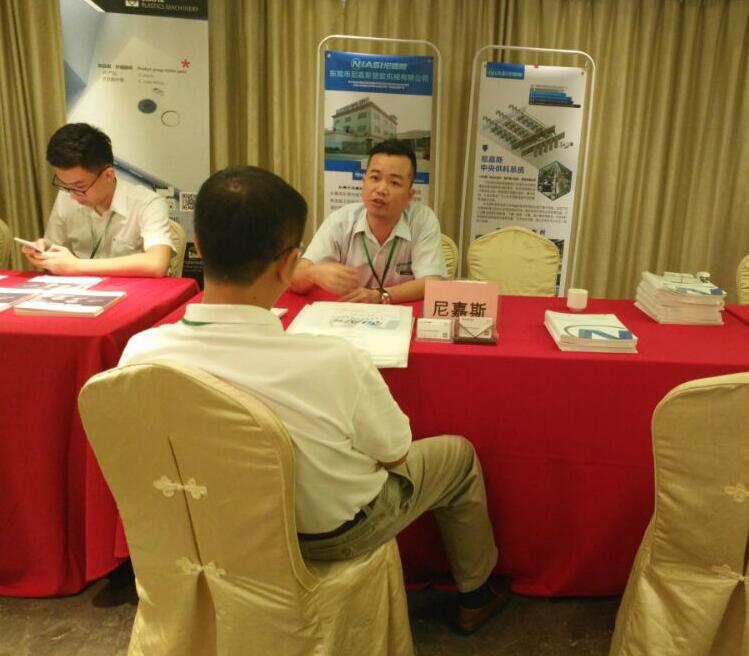 在大會現場,尼嘉斯交流席位上,不少前來參加注塑大會的同行業人士,通過了解翻閱尼嘉斯的宣傳冊,還與尼嘉斯的技術人員交流,了解行業新技術、新動向、未來趨勢等。